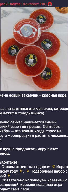 У меня новый заказчик - красная икра