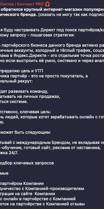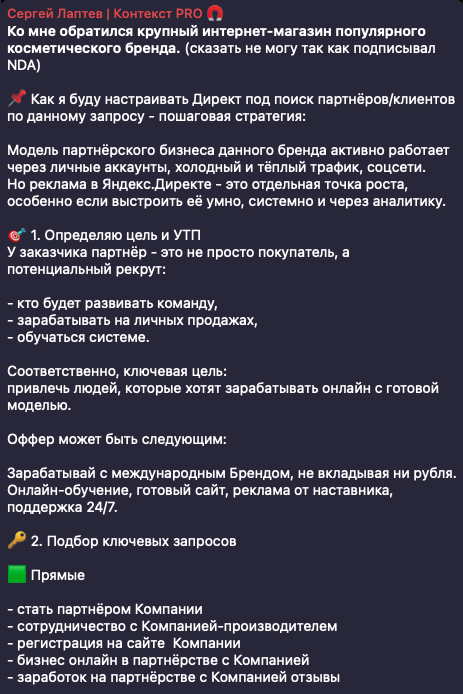 Подпишись на Telegram-канал, где эксперт с 9-летним опытом делится стратегиями и кейсами с бюджетами до 10 млн ₽