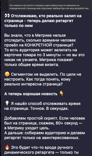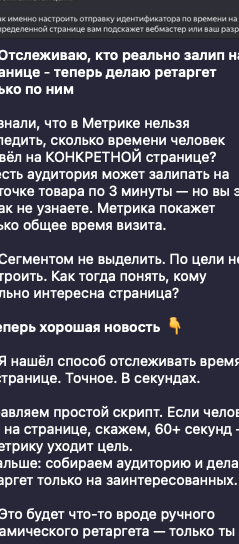 Отслеживаю, кто реально залип на странице - теперь делаю ретаргет только по ним